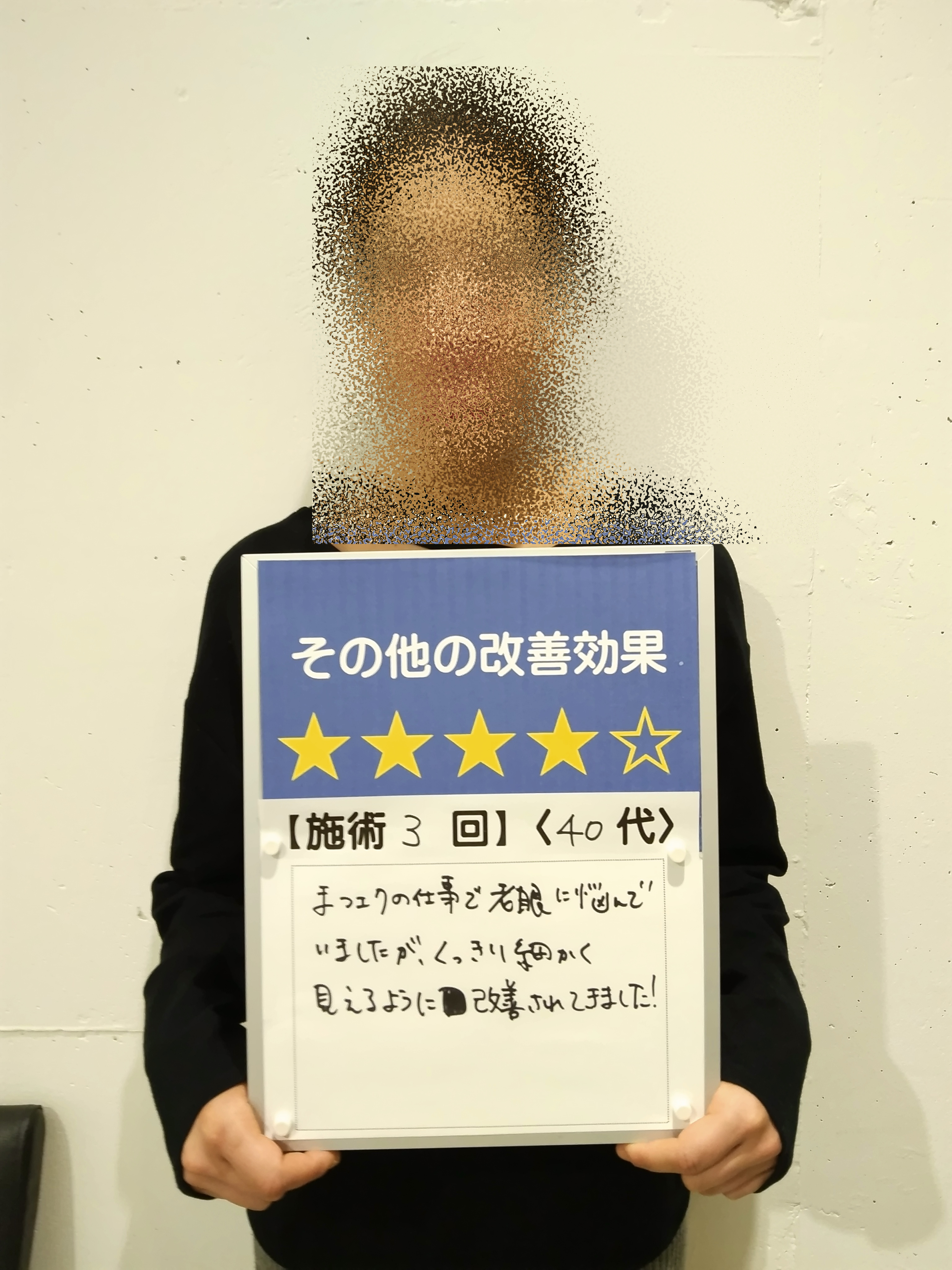 眼精疲労も改善され 最近は老眼鏡もほとんど使用しなくなってきました。